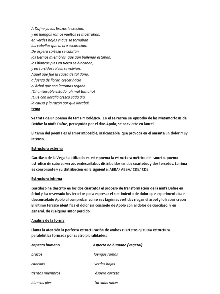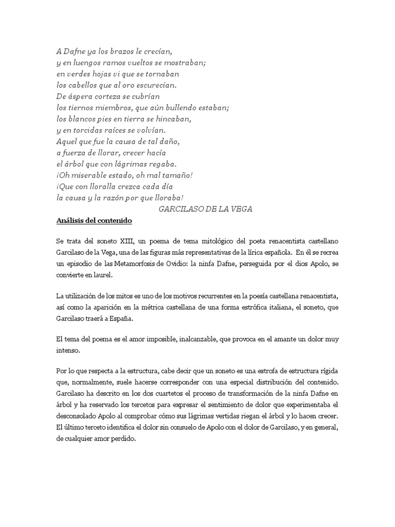 Poema A Dafne ya los brazos le crecían de Garcilaso De La Vega