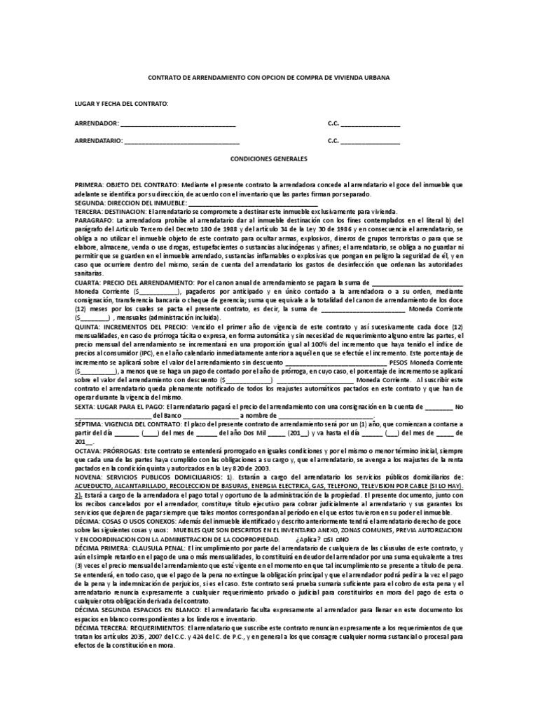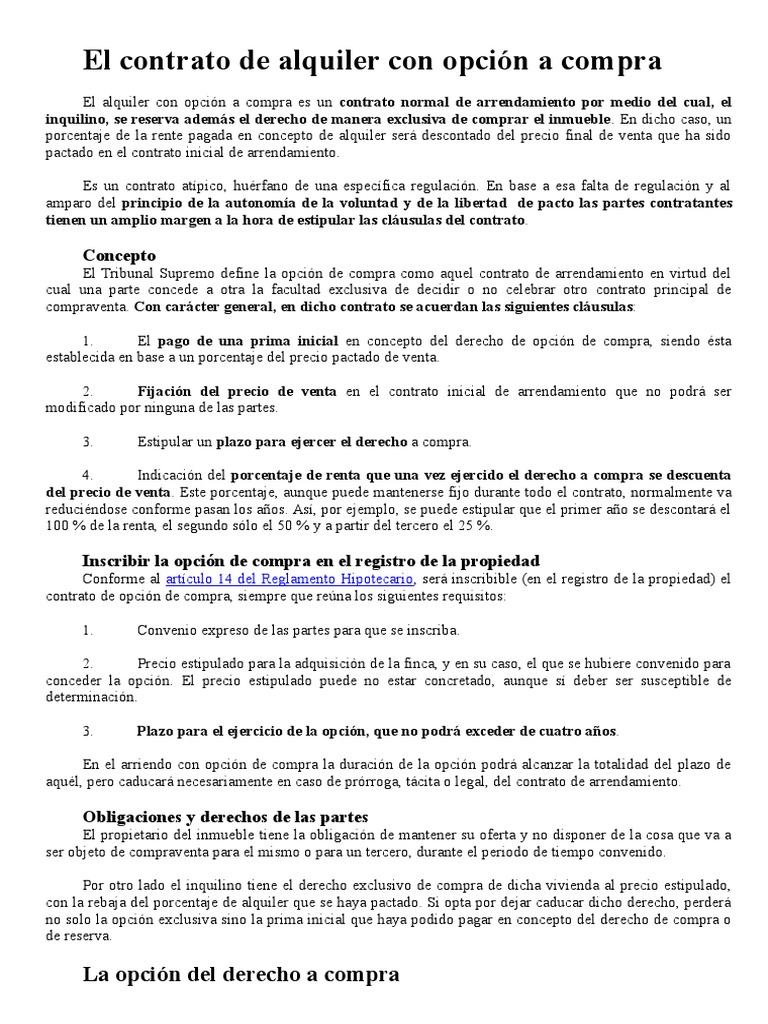 Contrato De Alquiler Con Opcion A Compra Modelo.