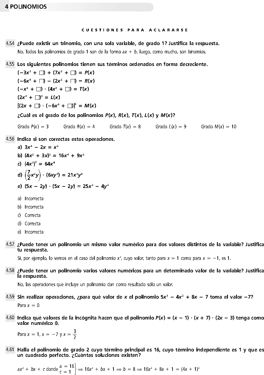 POLINOMIOS EJERCICIOS RESUELTOS DE SECUNDARIA – MATEMATICA 3 ESO PDF