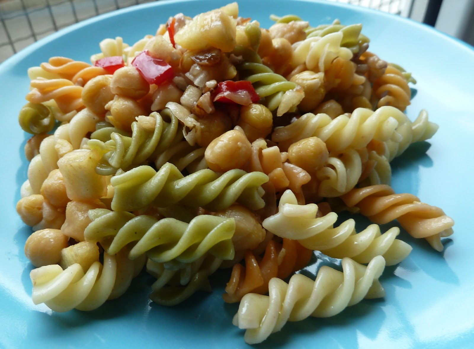 Ensalada de pasta con garbanzos, fresca y muy nutritiva