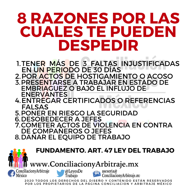 Conciliación y Arbitraje México: RAZONES POR LAS QUE TE PUEDEN DESPEDIR